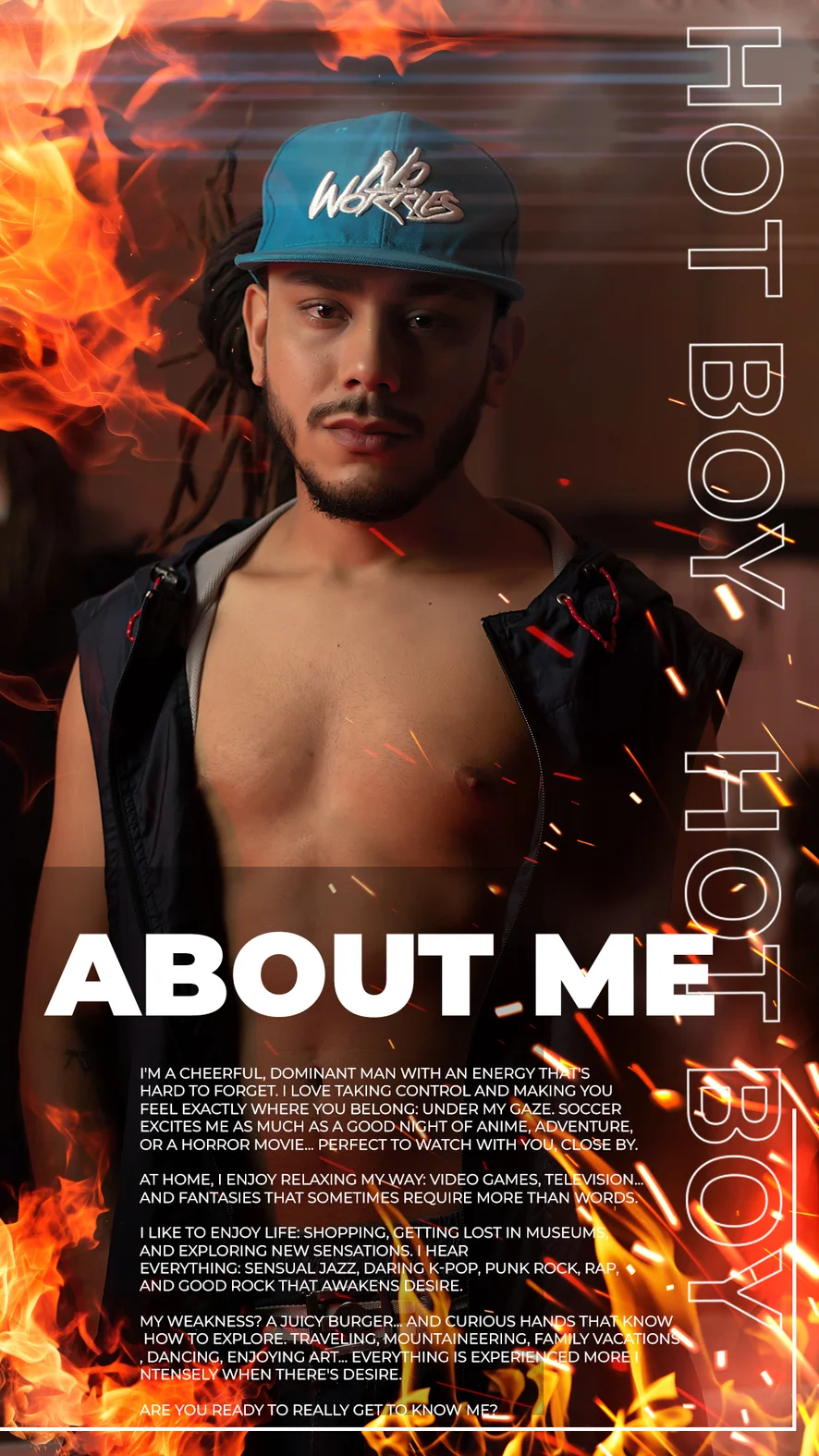 En extérieur, Cocu, Humiliation, Masturbation, Rouler des mécaniques, Dirty Talk, Fessée, Dance érotique, Fétichisme des pieds, pov, put oil stomach, push ups, pose muscles, squats, Yoga, CEI, Évaluation de bites, Fumeurs, Exhibitionisme, Cuir, Massage, Au bureau, Show huileux, SPH, spit cock, press balls, make esercite, flex biceps, show feet, lick arms, humillacion, Éjaculation, Masturbation guidée, Doggy style, Gagging, Branlette, Sous la douche