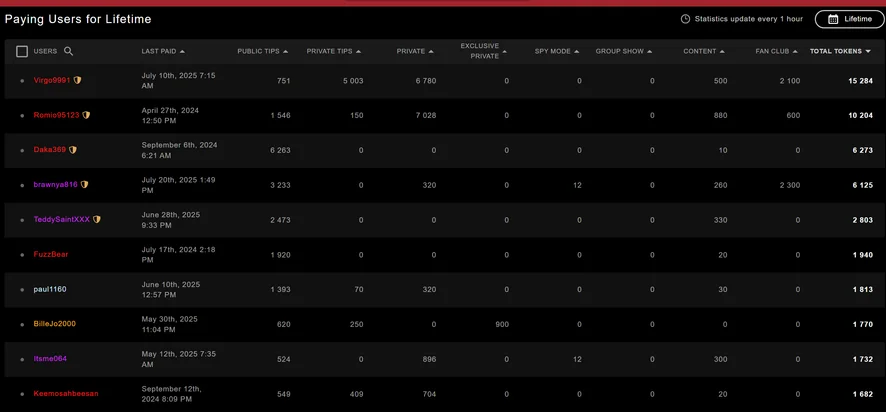 Wow amazing this is my life time top lover and tippers list their love and kindness for me from my tippers thank you all so much for supporting me